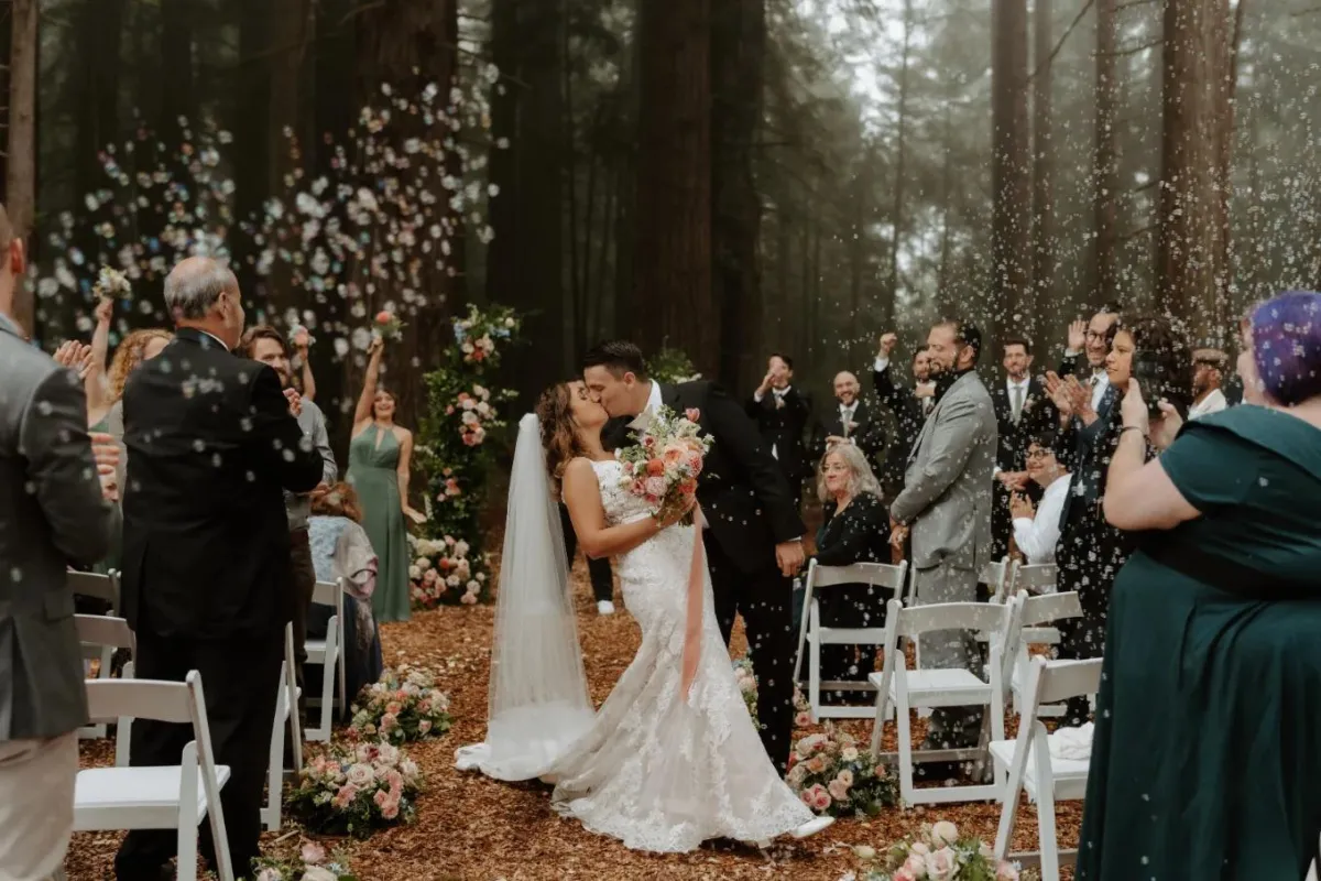 "Choosing Ridgefield as our wedding venue was the best decision we ever made! From the moment we stepped onto the enchanting grounds, we were swept away by the magical atmosphere. The towering redwoods created a natural cathedral for our ceremony, and the classic architecture added a touch of timeless elegance." – ALEAH & KENT